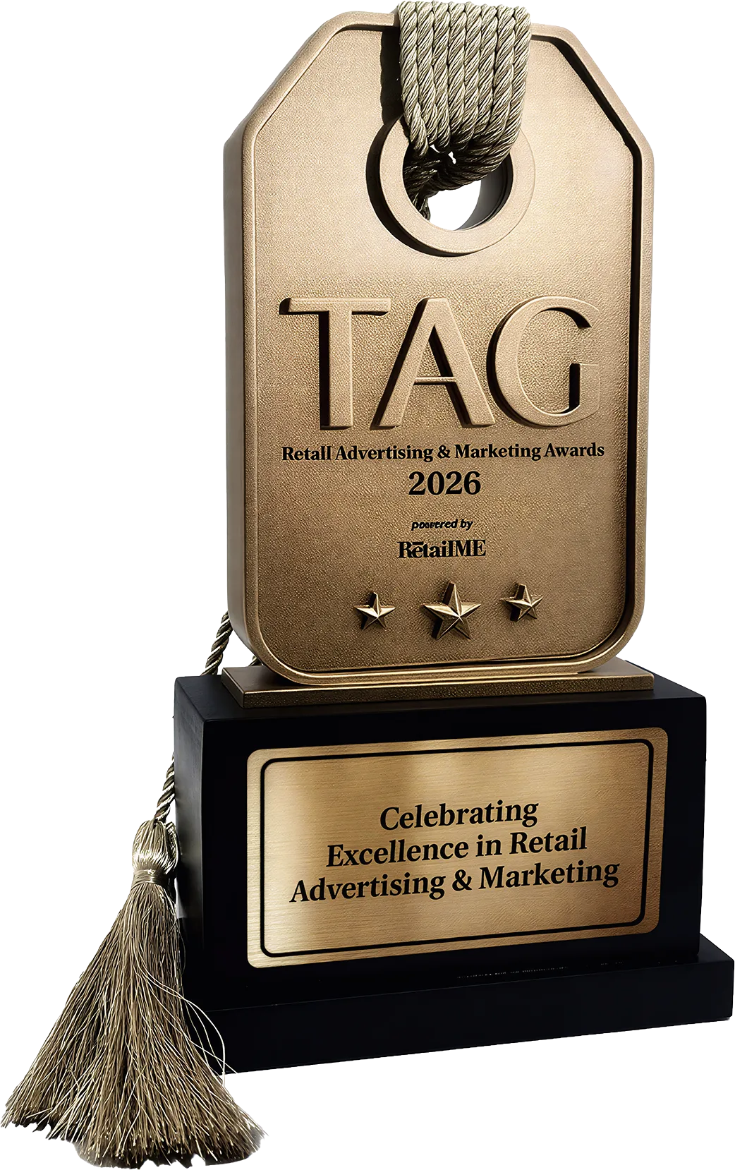The TAG was created to celebrate the creative forces behind retail’s most impactful ideas in advertising and marketing. The trophy takes the shape of a literal tag, a symbol of excellence that doesn’t just recognize, but resonates.